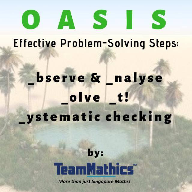 TeamMathics students are taught in regular classes, to make use of OASIS steps in handling mathematical problem solving. The ultimate objective is, we aim to help TeamMathicians learn and master OASIS Methodology created by our TRD Team from Academic Department.